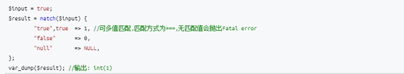 match是PHP8中新增的關(guān)鍵字(即無法再做類名),其作用與switch有點相似,用于變量的值轉(zhuǎn)換與賦值,使用如下: